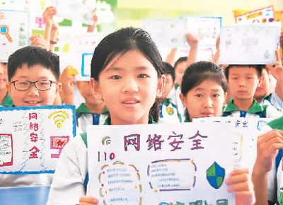 河北省邯鄲市永年區洺州小學的孩子們展示網絡安全手抄報。